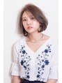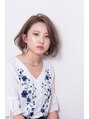 パーソナルカラーに合わせたグレージュの配合で肌の透明感をアップ。イヤリングカラーをアクセントとしてブロッサムピンクを入れて遊びを忍ばせてます。カットは大人っぽい前下がりショート。