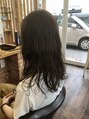 一ヶ月前に他店にて、カットパーマをしたが、かからなかった為、フォルムカットでフォルムを切り直し、形を出しパーマを復活させて頂きました。カラーはカーキグレージュで今っぽさをプラスし、艶やかに仕上げてあります。