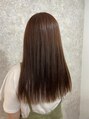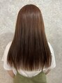 ハイトーン高発色のピンクベージュストレートです。人気のイルミナカラーでハイトーンのピンクベージュに仕上げてます。ピンク系カラーも季節問わずおすすめです。カットは毛先のダメージをとりつつ毛量調整。