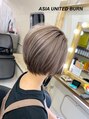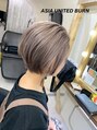 ☆☆☆根元と襟足を少し暗めにしたブリーチスタイル。ショートの場合、全部を明るくしちゃうとノペッとした感じになるので、根元と襟足部分を暗めなカラーで設定してあげると雰囲気が出てきます♪店内撮影で暗く見えるけど、かなりの透明感です☆☆☆