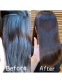 s状のゆるい癖を縮毛矯正で艶々にさせて頂きました。軟毛でゆるい癖はほぼ弱酸性でph6で設定。髪の毛は普段弱酸性でph4.5から5.5なので、あまりアルカリにふりすぎても酸性にふりすぎても良くありません。あまり動かさずとしてかけるのが髪に優しくなります。