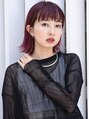 ミディアムレングスの外ハネボブスタイル。伸ばしかけにおすすめなスタイルです。ピンク系のツヤのあるカラーもオススメ。