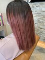 伸びてきても根元のプリンが気にならないように、暗めのグラデーションカラー☆ブリーチベースに上からピンクをオン!