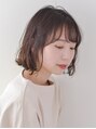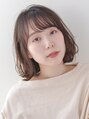 無造作な外ハネがルーズで可愛いボブスタイルです。カットは、肩上の長さに設定。段は入れず、Aラインシルエットに!パーマは、毛先にワンカール。トップには、根本からかけてゆるふわにします。カラーは、アッシュベージュで透明感カラーにしました。