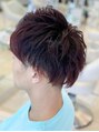 赤みのあるカラーに束感をだしたツーブロックスタイル☆10代20代に人気のスタイルです!