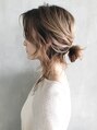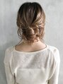 おくれ毛たっぷりラフお団子_耳かけウェーブパーマ_27408