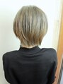 ベースを2回ブリーチ後、シャンプー台で黄味を飛ばし秘伝のレシピをオンカラー。透明感のある、何とも言えない外国人風シルバーの出来上がりです♪根元と毛先の調合を少し変え自然なグラデーションで染めてます☆