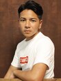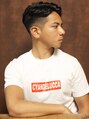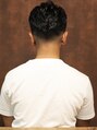 アウトラインを短く刈り上げたショートスタイルです。トップはやや長めに切ってアウトラインとトップとの長短をつけて前髪を上げて爽やかさを出したスタイルです。