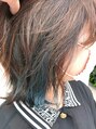 インナーを耳上だけブリーチしてから発色の良いブルーでイヤリングカラーを。退色したら違う色も楽しめます^_^派手すぎずに人とちょっと違うカラーしたい方、オススメです。