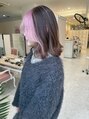 サイド部分にインナーカラーでホワイトベージュ○上の部分はあえてダークトーンにして明度差を出しています♪