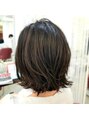 肩につかない位置で切りっぱなしのラインにしトップに少し段差を入れることで重たいシルエットの中に動きをプラス。重たく見えすぎず簡単スタイリングでアレンジもしやすい髪型です。