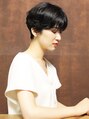 クセ毛のようなパーマをかけカジュアルショートヘア。クールになりすぎないように毛先を遊ばせ、後頭部に丸みをつけて女性らしさもプラス。襟足はタイトにしつつ毛先の柔らかさも残して首元を綺麗に見せます。