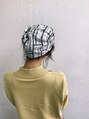 細かいウェーブのパーマスタイルです!ざっくりまとめても、ラフに下ろしても可愛いスタイルです!今回はバンダナアレンジをしてみました。