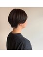 すっきりしたコンパクトなショートヘアです。丸いシルエットと顔周りや襟足の透け感で大人可愛いスタイルにしました。