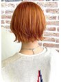 夏にぴったりのオレンジカラー★外ハネのショートでカジュアルに!ブリーチ1回にオンカラーで鮮やかなオレンジを。全体カラーはもちろんインナーやポイントで入れても可愛いお色です!