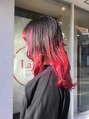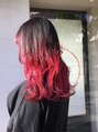 ブリーチでバレイヤージュ後、塩基カラーでド派手なレッドに◎ 個性的なスタイルがお好きな方にオススメな高発色カラーです☆