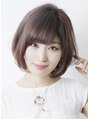 リップラインでカラーリングとパーマによるモテたい女性の為のフェミニンなボブスタイルです。短い前髪と中間からのカールの動きが特徴的なスタイルとなっています