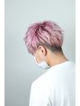 全体を薄めホワイトアッシュピンクで根元はブリーチ履歴が浅いので、少し濃い目のアッシュピンクで塗る事でほんのりピンクを演出!