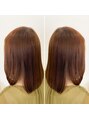 艶を重視した暖色系カラーです。カットはボブラインで内巻きにも外ハネにもなります。