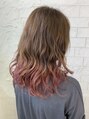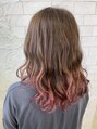 表面のカラーはイルミナを使った8トーンの明るい白髪染めに、内側はブリーチ後に10トーンのコーラルを重ねました。表面のカラーに対してインナーを明るくすることにより、綺麗なコントラストがうまれます。
