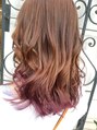 ゆるふわ仕上げ。毛先をピンク。