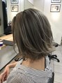 ブリーチ2回ベースのグレー味のあるベージュ。動きのつくカットで軽い印象のボブ。