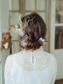 ゆるっとした、下目にポイントをおいたダウンセアセット!!きちっとしすぎず、ゆるめにアレンジしてあります。シンプルだけど、おしゃれなスタイルです。ポイントにインパクトのある飾りをつけると華やかな印象になります。