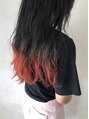 毛先のみグラデーションになるようにブリーチを1回。ブリーチ後オレンジカラーを毛先にON。遊び心のある可愛いカラーです!