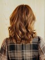 伸ばし途中の方にオススメです☆アッシュベージュのヘアカラーで明るめにして、全体が軽く見えるようになっています。表面にレイヤーを入れて毛先をコテで巻いています。