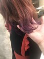 ピンクベージュに毛先だけパープルカラー。