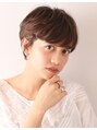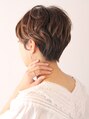 毛先にワンカールパーマをかけたショートスタイルです。動きのある女性らしいショートなので、スカート、パンツどちらのスタイルにも合います。カラーは9トーンのアッシュブラウンで艶っぽく仕上げています。