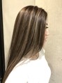 細いハイライトと太いハイライトをランダムに全体に入れてラフに仕上げました!オンカラーもアッシュすぎないけど、赤味黄味を抑えた柔らかいベージュ系のカラーで