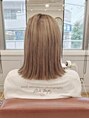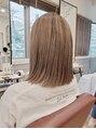 バッサリ20センチカットで長め切りっぱなしボブ!!外国人風ミルクティーベージュカラーで透明感とハイライトで立体感あるスタイルは憧れスタイル間違い無し!!※ブリーチ二回以上施術
