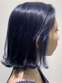 色落ちの綺麗さも間違いなしなネイビーカラー。ブリーチで綺麗にペースを抜きデニムのようなネイビーブルーを重ねます!毛先を細めのコテで外ハネにしクリームオイルで仕上げました!