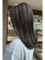 染めて2週間で白髪が気になる方、褪色赤みがきになる方、あまり明るくできない方、必見のスタイル!!透け感と柔らかさのある色が、人気!ハイライトにより動きや、立体感がでてストレートでも可愛い!