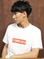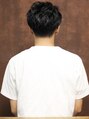 ベースは襟足とサイド短めのマッシュショート。トップにはレイヤーを多めに入れてゆるめにパーマをかけて立体感を出しています。耳上と襟足を短いツーブロックにしてあるので、すっきり感のある印象になります。