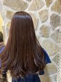 カットは毛先を揃えたワンレングス。8トーンのピンクブラウンをオンカラー。落ち着いたトーンのピンクカラーは全ての世代にオススメです!