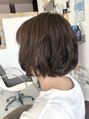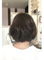 ボブベースの膨らまない様な、ラフなパーマスタイルです。中の毛量をしっかり調整して、ご自分でもスタイリングし易い様にしてあります。カラーは夏の季節に映える様な抜け感のあるゴールドベージュで軽やかに♪