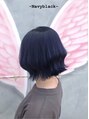 全体フルブリーチの高発色カラー最近きてますブルー系♪敢えて根本にblackのをデザインして染めたての不自然なカツラ感をなくしてます^^ど派手な色味でもどこかナチュラルに(^o^)/ジャパンテイストに寄り添ったブリーチカラーリング☆