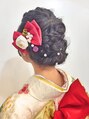 ねじりと編み込みで表情豊かに仕上げたヘアアレンジ。お着物に似合う上品な雰囲気を残しつつ、個性的でガーリーな遊びココロもスパイスに。リボンとパールで可愛く華やかに仕上げて。手の込んだ技ありスタイルに周りの視線も集中。後ろ姿で魅せます。