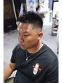 モヒカンラインに長さを残した、アップバングショート。サイドは1mmスタートのフェードで男らしさ全開★