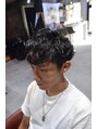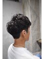 強めのカールが印象的な、ムーブマッシュ。サイドのツーブロックと、トップの毛となじませたバックの刈上げで、重ためのシルエットながら、スッキリとした印象に。