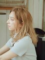 やわらかミディアムボブ☆顔周りとトップ表面にゆるい巻きを加えた可愛らしい女子スタイル。前髪長めのハイトーンでキュートな幼さが出ないように仕上げています!前髪は少し立ち上げると大人っぽさアップ!
