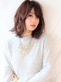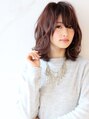 斜めバングとローレイヤーで重めスタイルに仕上げたエアリーミディ。リラクシーな無造作ウェーブと透け感バングでふわっとした軽さもプラス。深みあるレッド系カラーでコクあるリッチスタイルに。作りすぎない抜け感がカッコイイ。