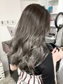 半年前のバレイヤージュのベースにハイライトを足して、色落ちを楽しんでいけるように濃いめのグレージュに仕上げました。ラフなウェーブ仕上げがgoodなスタイルです。白髪ぼかしにもハイライトはおすすめですよ!ケアもしながら美髪を作ります