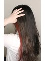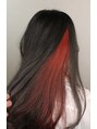 ブリーチ2回のインナーカラー♪上は暗めのアッシュにしてインナーもレッドを際立てた高彩度カラー☆巻いて仕上げるとキレイさUP!!