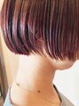 ブリーチなし ピンクレッドカラー ミニボブ 暖色系