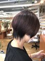 ちょっと軽めのマッシュショート。ベースは少々明るめのピンクバイオレットで染めてインナーと襟足付近を暗めのアッシュブルーでまとめたメリハリスタイルです☆