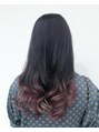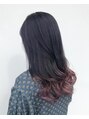 パープルグラデーションカラー♪毛先10センチ未満をポイントブリーチでつくるグラデーションカラー☆ベースはしっかり赤みを抑えたネイビーの色合いを!毛先にパープルガーネットとパープルを混ぜ淡い色合いを再現!少し個性のある可愛いスタイルに♪