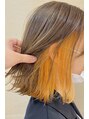 表面は明るめのベージュにインナーカラーをレモンオレンジでビビットに染めました。耳周りや襟足にポイントで入れるのにおすすめです。おしゃれカラーしてみませんか?